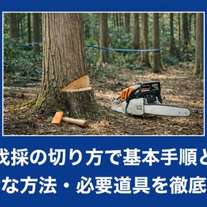 伐採を行う際の視点の高さや立ち位置、体重のかけ方ひとつで角度が変わるため、必ず水平を確認しながら慎重に作業を進める必要があります。小さなずれが命取りにならないよう、安全を最優先に正確な切り込みを行いましょう。